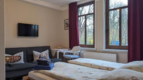 Pension Weseraue坐落于霍尔茨明登,距离哈默尔恩中央车站有不到48公里,距离拉顿芳格大厅有48公里,配备免费WiFi。