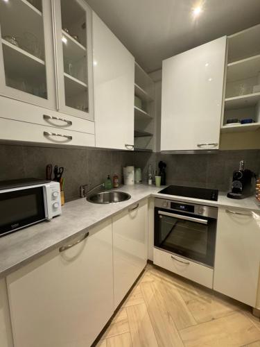 这家1卧室公寓提供起居室、平板电视、带冰箱和烤箱的设施齐全的厨房以及1间带吹风机的浴室。这家公寓还配备休息区以及1间带浴缸的浴室。