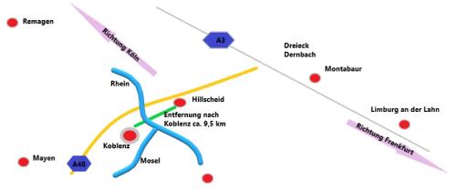 这家公寓距离科布伦茨剧院有14公里,距离莱茵摩泽尔哈雷有14公里。法兰克福哈恩机场距离住宿有87公里。