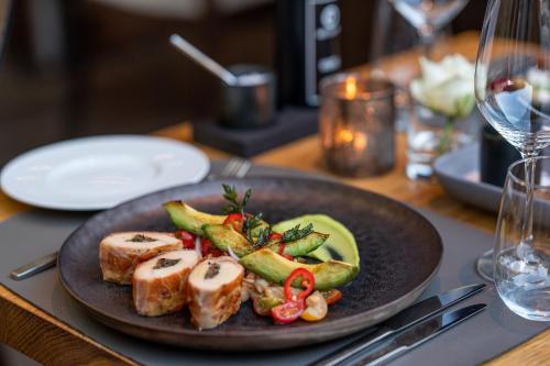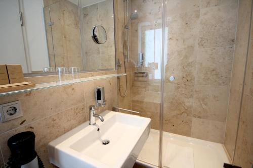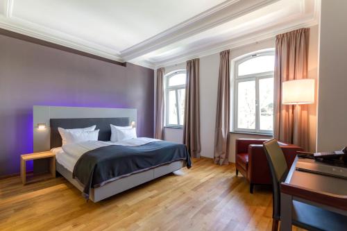 Qube Hotel Bergheim酒店典雅的禁烟客房配有天然石材浴室、木地板和平板电视。所有客房均设有空调和皮革扶手椅。