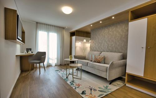 The rooms are designed in a modern décor and all feature a flat-screen TV and an en suite bathroom with bathrobes. They also include a balcony or a terrace.