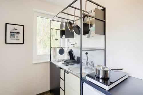 房间铺有镶木地板,配有带冰箱的设施齐全的小厨房、带卫星频道的平板电视以及带淋浴设施和吹风机的私人浴室。住宿还提供微波炉和炉灶以及咖啡机和电热水壶。