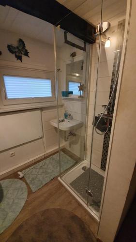这家度假屋提供露台,享有花园景,配有1间卧室、起居室、平板电视、带冰箱和洗碗机的设施齐全的厨房以及1间带淋浴设施的浴室。1间浴室提供吹风机。