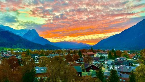 Dachterrasse Panorama-Glück I坐落于加尔米施-帕滕基兴,享有山景,提供免费WiFi,距离韦尔登费尔斯博物馆仅5分钟步行路程,距离路德维希大街有500米。这家公寓配有庭院。客人可以在周边地区体验徒步、滑雪和骑行等活动。
