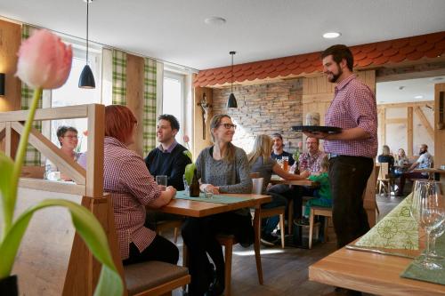 Hotel Gasthof Sonne酒店每天早晨提供自助早餐。餐厅供应施瓦本菜肴的午餐和晚餐。夏季举行烧烤活动。