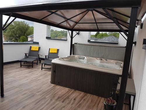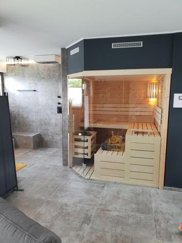 Timeout Lodges - Luxus für Zwei位于杜德尔多夫,距离特里尔竞技场有34公里,距离特里尔剧院有35公里,提供免费WiFi以及带室外泳池的花园,享有花园景。客人可以使用桑拿浴室和热水浴池。内部提供私人停车位。