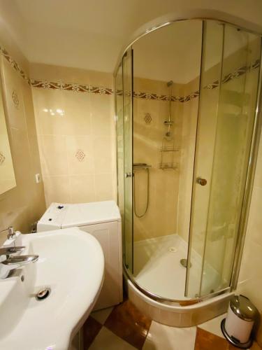 这家公寓配有1间卧室、起居室、带冰箱和咖啡机的设施齐全的厨房以及1间带淋浴设施和吹风机的浴室。这家公寓也配备休息区和1间浴室。