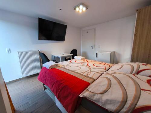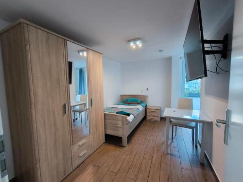 Pension Isabel公寓的禁烟客房配有电视、衣柜和小桌椅;2间可上锁的淋浴间和2个卫生间都位于走廊。