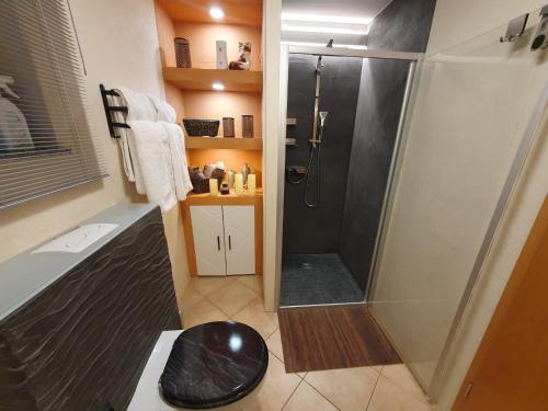 这家公寓配有1间卧室、起居室、带冰箱和咖啡机的设施齐全的厨房以及1间带淋浴设施和吹风机的浴室。这家公寓也配备1间浴室。