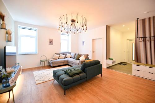 这家公寓配有2间卧室、起居室、带冰箱和咖啡机的设施齐全的厨房以及1间带淋浴设施的浴室。这家公寓也拥有休息区和1间浴室。