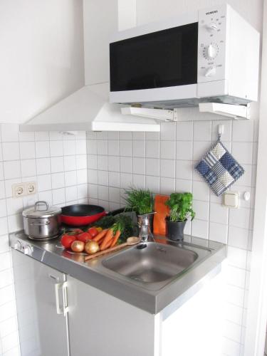 这家公寓配有1间卧室、起居室、带冰箱的设施齐全的小厨房以及带淋浴设施和吹风机的浴室。住宿配备电视和DVD播放机。
