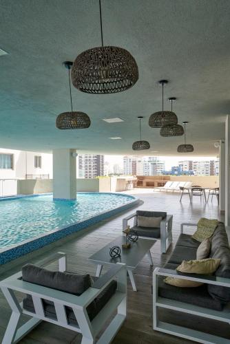 Amazing Harmony Apartment, Balcony, Pool & Spa in La Julia距离圣多明各中心不到一公里,距离Blue Mall有1.7公里,配备带阳台和空调住宿、户外游泳池和共用休息室。住宿配备的免费WiFi,内部提供私人停车位。