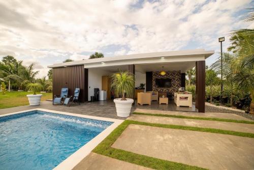 tu refugio feliz坐落于圣地亚哥洛斯卡巴,享有花园景,配有客房、私人泳池和阳台。这家空调住宿距离莱昂中心有1.8公里,为客人提供免费WiFi,内部提供私人停车位。