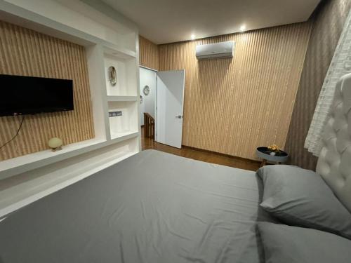 这家别墅拥有露台、1间卧室、3间浴室、设施齐全的厨房、平板电视和桑拿浴室。这家别墅也配备3间浴室。
