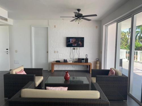 Vista Mare Ocean View Spacious 2-Bedroom距离拉马拉海滩(Playa La Mara)有3分钟步行路程,距离渔民村有49公里。萨马纳埃尔凯特国际机场距离住宿有59公里。