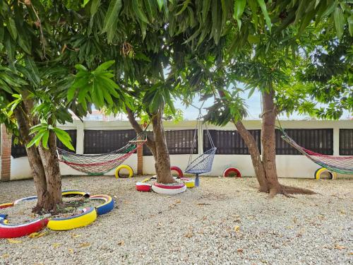 这家别墅配备室外泳池和儿童游乐场供客人使用。