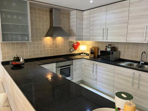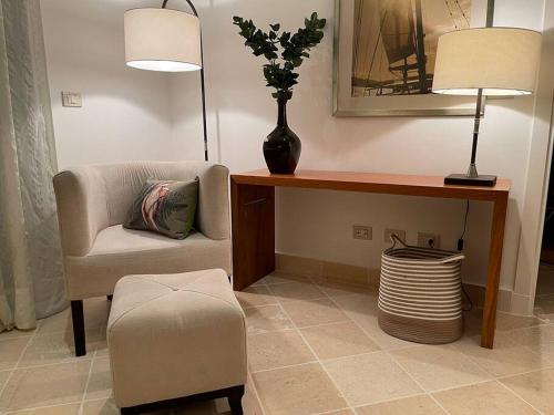 这家公寓提供露台,享有池景,配有1间卧室、起居室、平板电视、带冰箱和烤箱的设施齐全的厨房以及1间带淋浴设施的浴室。1间浴室配有浴缸,也为客人提供吹风机,提供毛巾和床上用品。