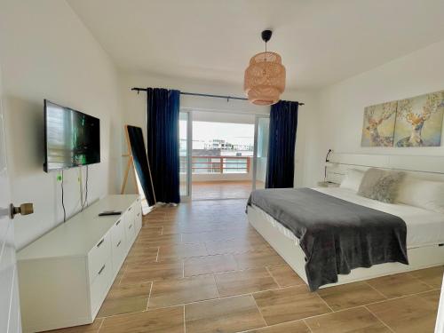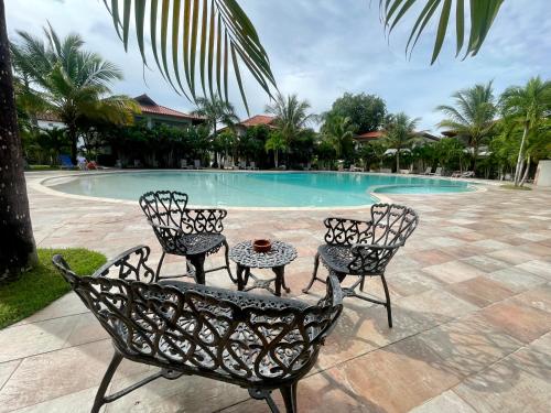 这家公寓提供阳台,享有池景,配有1间卧室、起居室、平板电视、带冰箱和烤箱的设施齐全的厨房以及1间带淋浴设施的浴室。这家公寓提供空调,也拥有1间带浴缸和洗衣机的浴室。