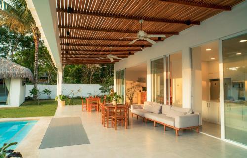 Vikara坐落于奥隆,距离奥隆海滩(Olon Beach)有几步路,配备免费WiFi和空调。客人可以使用带室外泳池的花园。内部提供私人停车位。