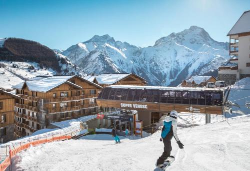 Résidence Club MMV Les Clarines坐落于莱德萨阿尔卑斯,距离加利比耶有44公里,配备滑雪通行证售票处、滑雪至门口雪道、桑拿浴室和土耳其浴室。住宿配备免费WiFi,内部提供私人停车位。