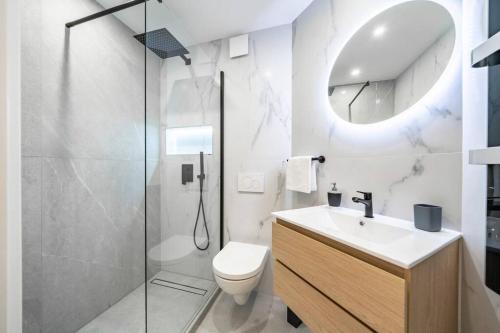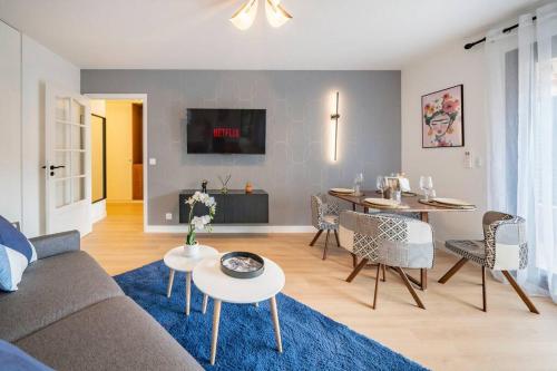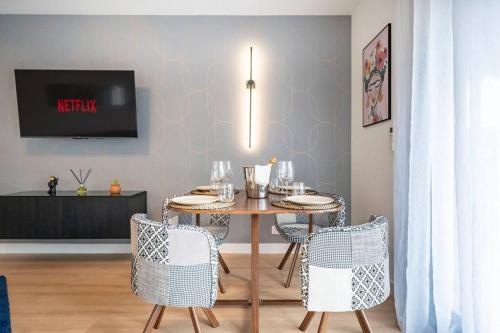 这家空调公寓配有2间卧室、起居室、带冰箱和咖啡机的设施齐全的厨房以及1间带淋浴设施和免费洗浴用品的浴室。这家公寓还配备休息区、洗衣机以及1间带吹风机的浴室。