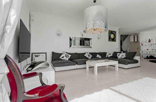 这家别墅配备5间卧室、3间浴室、床上用品、毛巾、带卫星频道的平板电视、用餐区、设施齐全的厨房以及海景露台。这家空调别墅还提供休息区、洗衣机以及3间带淋浴设施和浴缸的浴室。