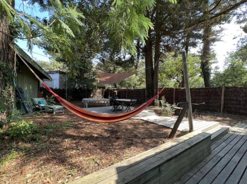 Cap Ferret - Réf 4102坐落于雷日卡普费雷,提供花园,享有花园景,距离贝利瑟海滩(Belisaire Beach)有不到一公里,距离沙丘海滩(Dune Beach)有12分钟步行路程。这家度假屋配有免费私人停车位。客人可以在周边地区体验徒步、打高尔夫和骑行等活动。