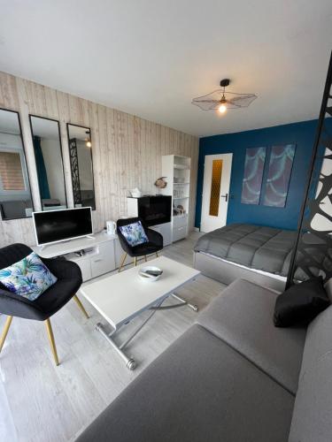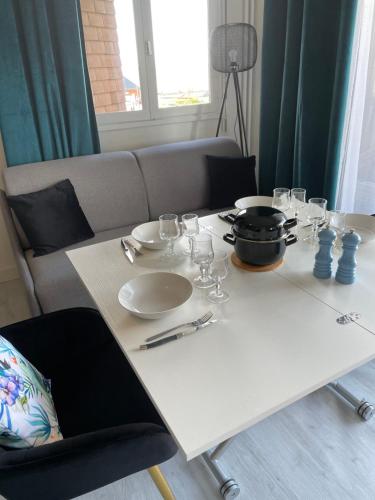 Studio Terrasse Vue Mer享有海景,配备阳台和咖啡机,距离西海滩(West Beach)约有几步路。这家海滨住宿的客人可以使用露台、免费私人停车位和免费WiFi。