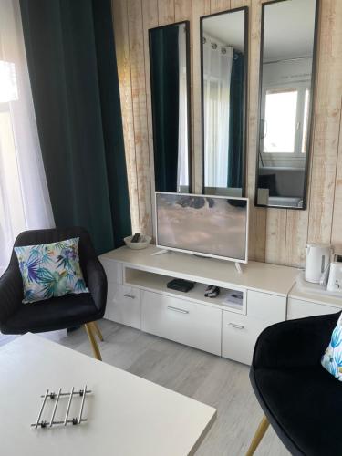 这家公寓拥有平板电视、带冰箱和烤箱的设施齐全的厨房以及带淋浴设施和吹风机的浴室。这家公寓配备毛巾和床上用品。