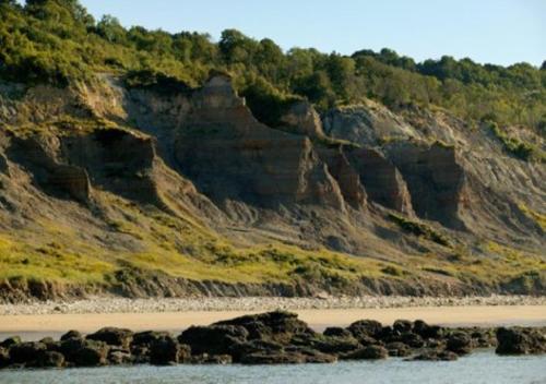 Studio Terrasse Vue Mer距离滨海维勒斯海滩(Villers-sur-Mer Beach)有几步路,距离精灵海滩(Goblins)有13分钟步行路程。多维尔-圣加蒂安机场距离住宿有11公里。