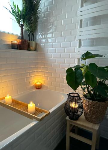 这家公寓提供2间卧室以及2间带淋浴设施、浴缸和吹风机的浴室。这家公寓也配有2间浴室。
