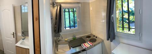 房间均配有空调、冰箱、微波炉、咖啡机、淋浴设施、免费洗浴用品和衣柜。这家旅馆的客房提供配备吹风机的私人浴室,也配备免费WiFi。部分客房享有池景。Sous les pins parasols的所有客房都提供床上用品和毛巾。