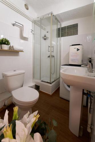 这家公寓配有起居室以及带吹风机和淋浴设施的浴室。厨房配有冰箱、微波炉、炉灶、咖啡机和电热水壶。