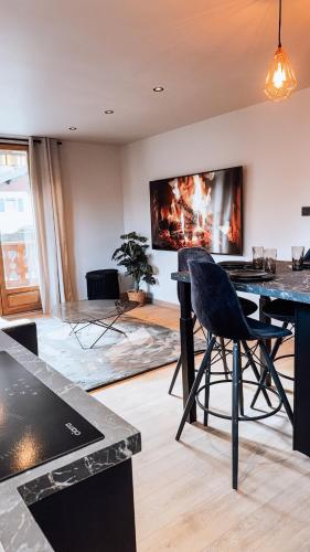 Appartement complètement rénové坐落于雄济耶,享有花园景,距离罗什博览会有23公里,距离日内瓦大喷泉有40公里。这家住宿的客人可以使用阳台、免费私人停车位和免费WiFi。