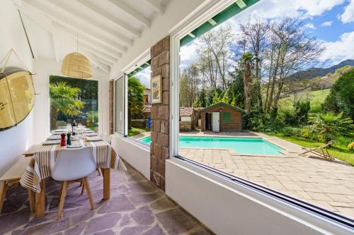 Mendizola - 5 chambres - Piscine - Vue montagne享有池景,配备户外游泳池和庭院,距离圣让德卢斯火车站约有14公里。这家自助式别墅拥有私人泳池、花园和免费私人停车位。
