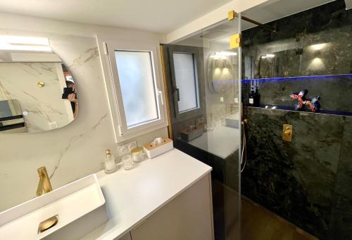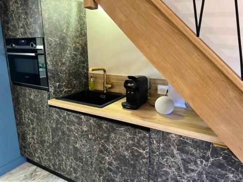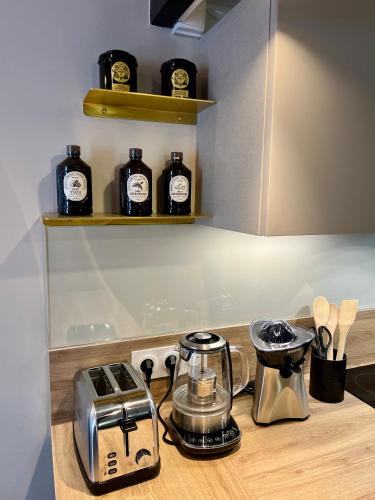 这家空调公寓配有1间卧室、起居室、带冰箱和咖啡机的设施齐全的厨房以及1间带坐浴盆和淋浴设施的浴室。这家公寓还配备休息区、洗衣机以及1间带免费洗浴用品的浴室。