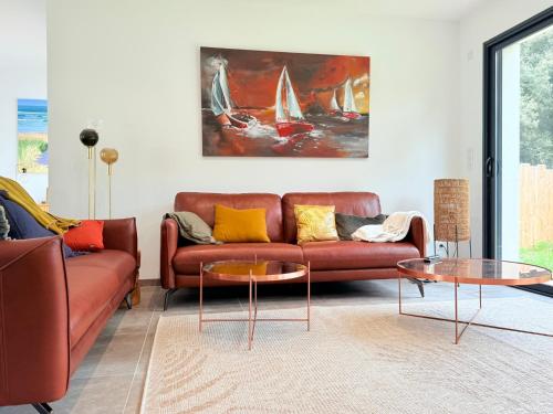 Maison haut standing près de la plage坐落于奥雷龙圣皮耶尔,距离梅诺涅尔海滩(Plage de la Menouniere)仅有8分钟步行路程,提供花园、露台和礼宾服务。这家别墅距离科蒂涅尔海滩(Plage de la Cotiniere)有2.2公里,距离博涯堡垒有15公里。