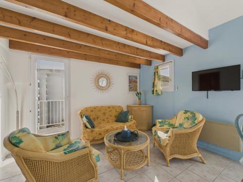 Vue imprenable sur l'océan pour 4 personnes享有海景,提供阳台和咖啡机,距离布瑟勒瑞斯海滩(Bussoleries Beach)约有2分钟步行路程。这家公寓距离圣让德蒙特斯娱乐城有14公里,距离房特涅勒斯高尔夫球场有15公里。
