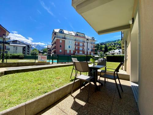 Appt MIAGE - 2 pièces cabine, terrasse & piscine坐落于圣热尔韦莱班,配有私人泳池,享有池景。这家公寓距离勃朗峰缆车有39公里,距离阿尔贝维尔哈雷奥林匹克会展中心有46公里。