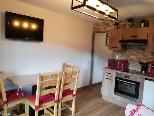 这家公寓提供阳台,享有山景,配有1间卧室、起居室、平板电视、带冰箱和烤箱的设施齐全的厨房以及1间带浴缸的浴室。1间浴室提供吹风机。
