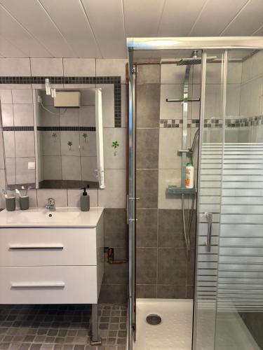 这家度假屋配备2间卧室、带冰箱和洗碗机的厨房以及1间带淋浴设施、吹风机和洗衣机的浴室。这家度假屋也提供1间浴室。
