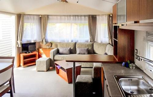 Beautiful StaCaravan坐落于圣布里文莱丝皮恩,配有游泳池、露台和设施齐全的厨房,距离东宫海滩(Ermitage Beach)有7分钟步行路程。内部提供私人停车位。