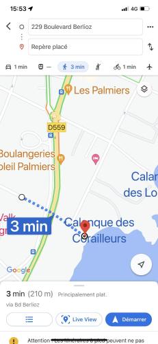 这家公寓距离Chateau de Grimaud有26公里,距离Le Pont des Fées有26公里。尼斯蓝色海岸机场距离住宿有64公里。