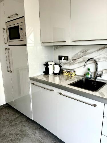 这家公寓提供1间卧室、1间浴室、床上用品、毛巾、平板电视、设施齐全的厨房以及海景阳台。这家空调公寓还配备休息区、洗衣机以及1间带坐浴盆和淋浴设施的浴室。
