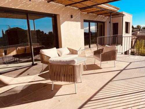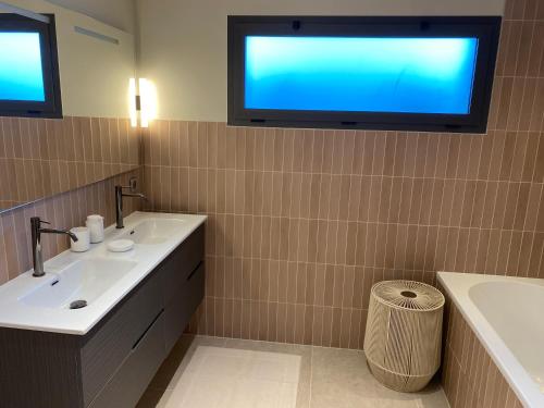 这家空调别墅配有4间卧室、起居室、带冰箱和咖啡机的设施齐全的厨房以及3间带淋浴设施和吹风机的浴室。这家别墅还提供平板电视、休息区、洗衣机以及3间带浴缸的浴室。