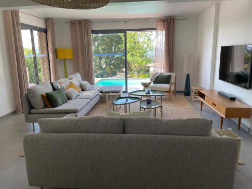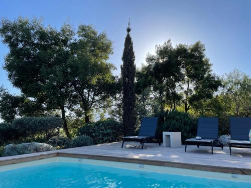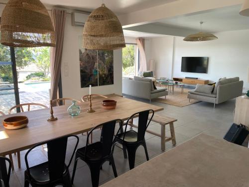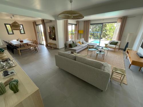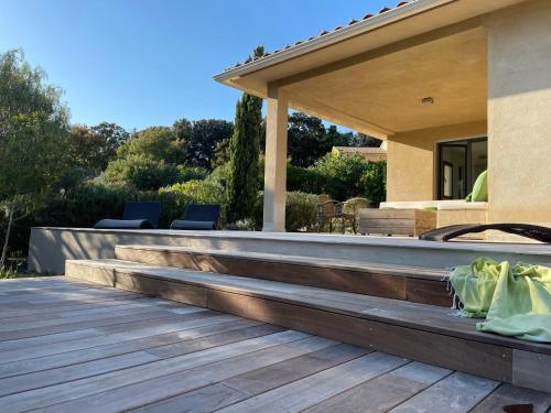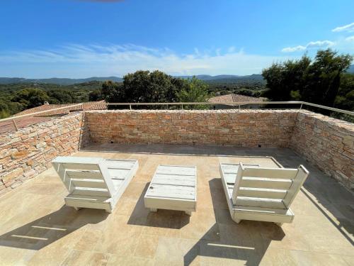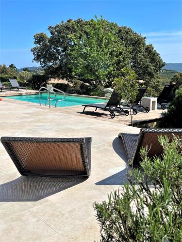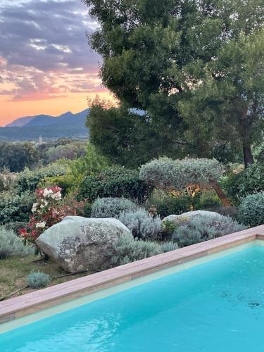 Villa Terra Vecchia, 6 ou 12 personnes, vue imprenable, piscine chauffée提供户外游泳池、花园以及带阳台和免费WiFi的空调住宿,距离波尔图韦基奥港有8.4公里。内部提供私人停车位。