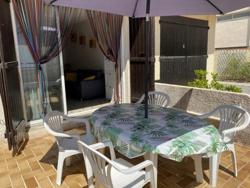Villa T2 cosy, 40m², 4 pers, proche plage, 2 terrasses, tout équipé, calme et commerces à proximité - FR-1-797-53坐落于朗格多克-鲁西永大区的拉努韦勒港,配有露台。这家实惠型别墅距离蒙蒂尔海滩(Plage des Montilles)有4分钟步行路程。