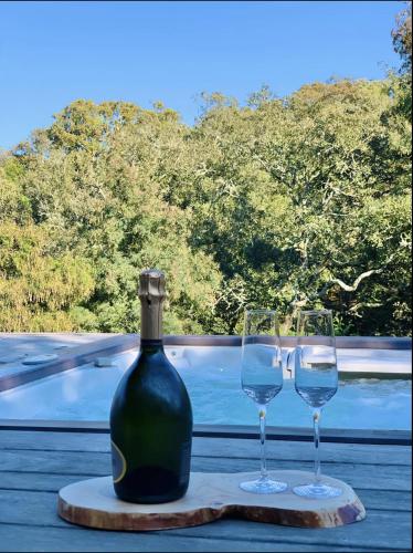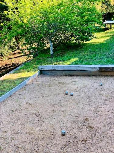 F2 avec jacuzzi, pétanque, à 3 min mer, dans grande propriété位于波尔蒂乔,距离维瓦海滩(Viva)有19分钟步行路程。客人可以使用热水浴池。这家自助式公寓配有花园、烧烤设施、免费WiFi和免费私人停车位。