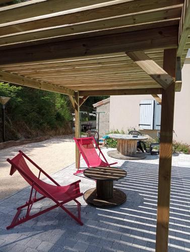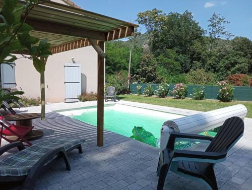 Chambre privée dans maison坐落于Pont-de-Labeaume,配有私人泳池,享有山景。这家住宿距离阿尔代什拱桥有45公里,配备露台和免费私人停车位。