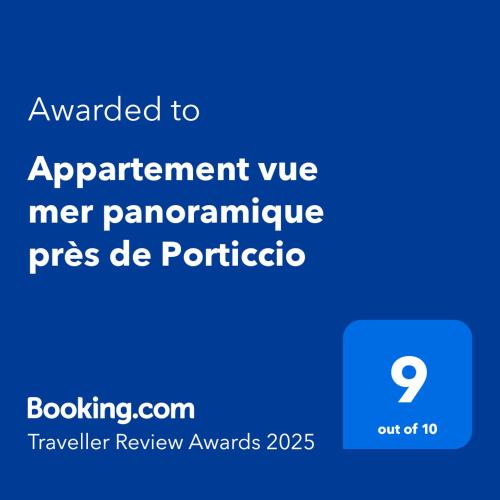 Appartement vue mer panoramique près de Porticcio位于皮耶特罗塞拉,享有海景,距离鲁皮奥内海滩(Plage de Ruppione)有2.7公里,距离戛纳港有20公里。这家住宿距离阿格斯塔海滩(Agosta)有几步路,提供露台和免费私人停车位。